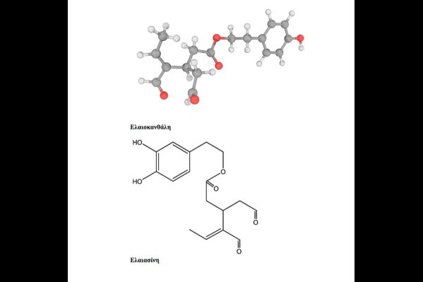 Η ελαιασίνη είναι η ισχυρότερη αντιοξειδωτική ουσία που περιέχεται στο ελαιόλαδο, ενώ η ελαιοκανθάλη είναι μια ουσία στην οποία έχουν αποδοθεί αντιφλεγμονώδεις και νευροπροστατευτικές ιδιότητες.